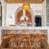 Điểm ấn tượng nhất của Pearl Retreat chính là hệ thống cửa vòm trắng muốt. Dưới ánh đèn đêm, những đường cong này tạo nên một vẻ đẹp huyền bí và cổ điển, tương phản mạnh mẽ với màu xanh hiện đại của sân bóng.