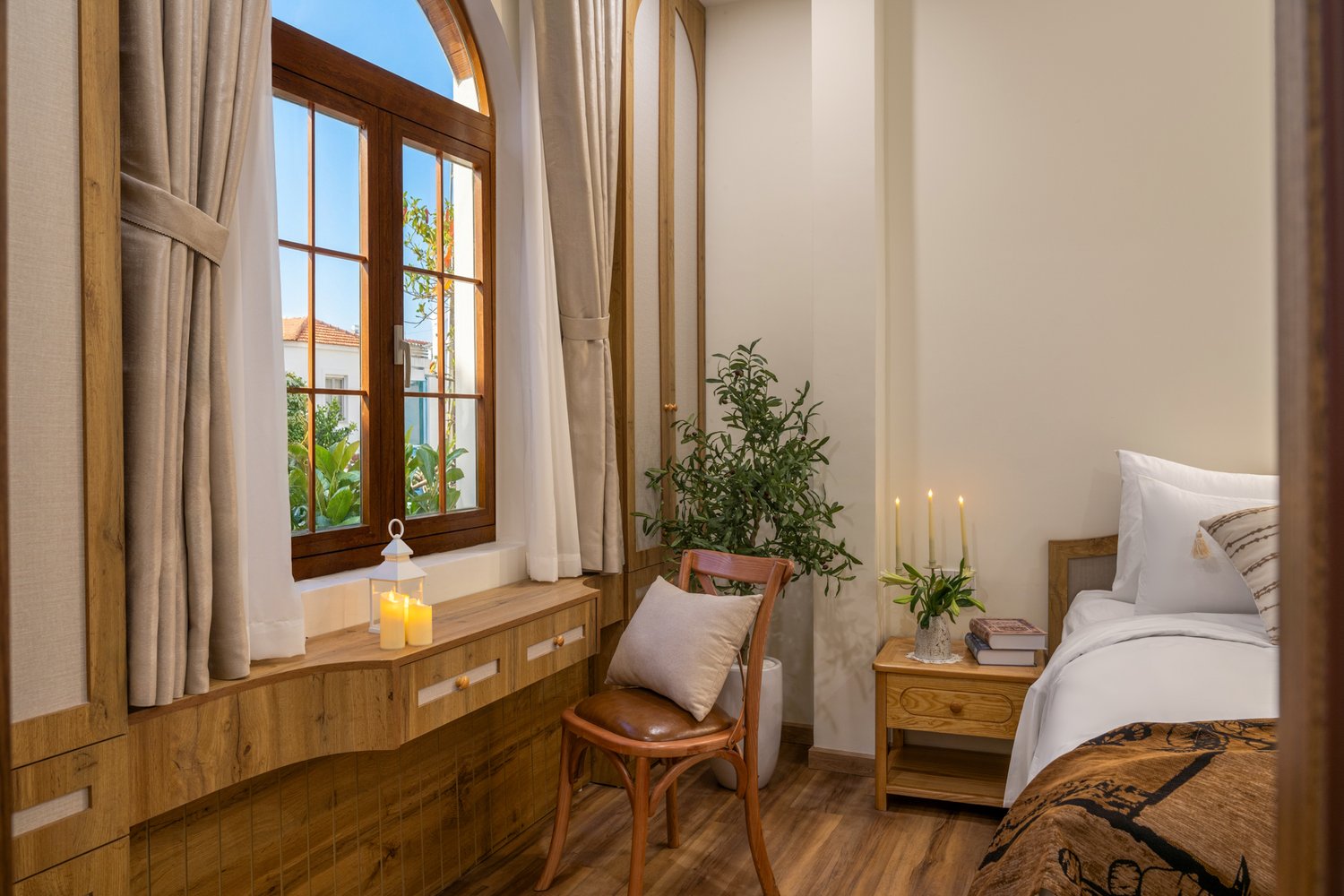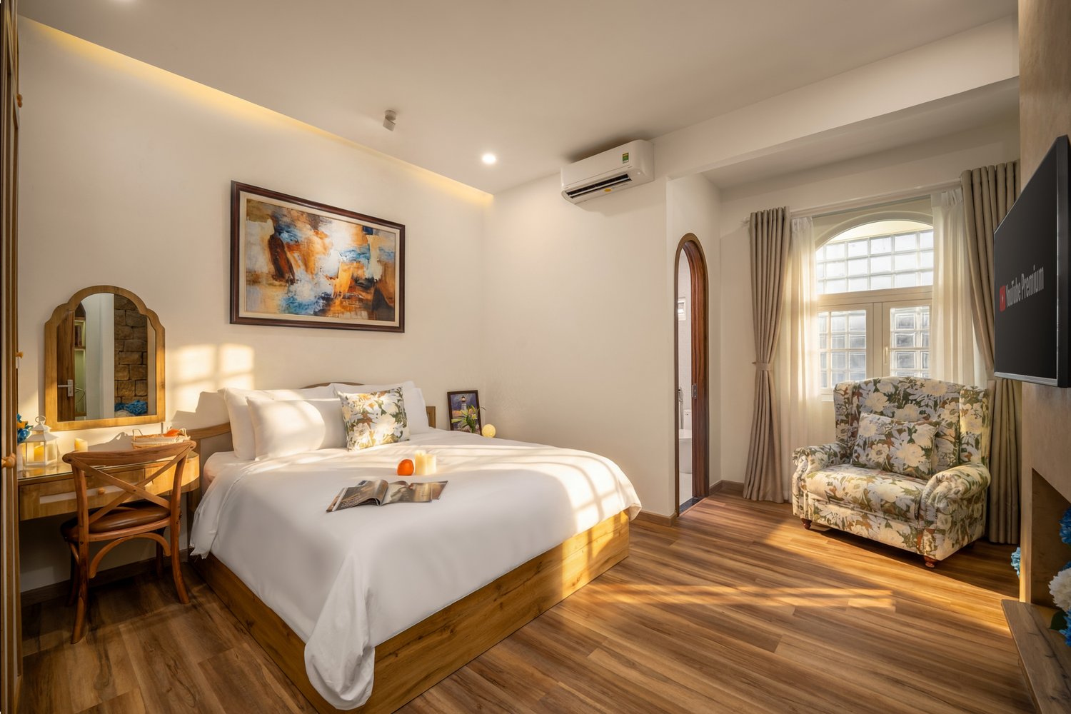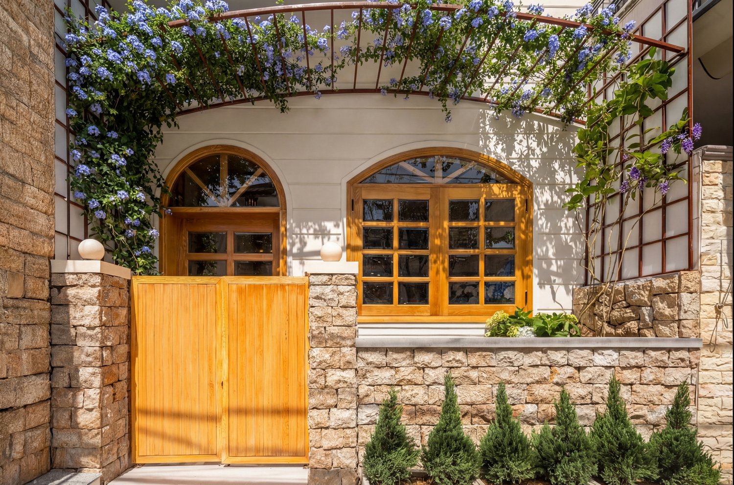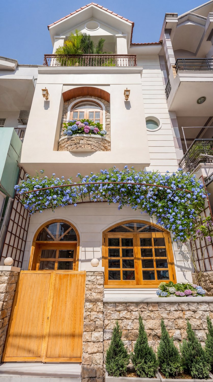 Mediterranean (Địa Trung Hải) không chỉ là một phong cách thiết kế, đó là một lối sống hướng về sự tự do, phóng khoáng và gần gũi với thiên nhiên. Dự án **Mediterranean Charm Villa** do Ha Phong Studio ghi nhận đã lột tả trọn vẹn tinh thần này. ## 1. Hệ cửa vòm và sự mềm mại trong hình khối Điểm nhấn đầu tiên đập vào mắt người xem chính là hệ thống cửa sổ và cửa chính bằng gỗ tự nhiên uốn vòm. Ha Phong Studio đã chọn thời điểm ánh nắng vàng nhẹ để làm bật lên những đường vân gỗ và sự liên kết nhịp nhàng giữa các khối kiến trúc. ## 2. Đá tự nhiên và nghệ thuật masonry Mảng tường đá nhám được ốp lát thủ công tạo nên một bề mặt vật liệu phong phú, mang lại cảm giác vững chãi nhưng không kém phần mộc mạc. Đây là phông nền hoàn hảo để giàn hoa Thanh Xà có dịp được khoe sắc. ## 3. Không gian xanh lãng mạn Ha Phong Studio đặc biệt chú trọng vào việc bắt trọn sự tương tác giữa cây xanh và kiến trúc. Không gian sân vườn không chỉ là phần phụ, nó là một phần không thể tách rời giúp ngôi nhà thực sự ‘thở’. Ha Phong Studio tự hào là đơn vị lưu giữ những giá trị kiến trúc đích thực. — **Từ khóa:** chụp ảnh biệt thự, phong cách Địa Trung Hải, chụp ảnh kiến trúc chuyên nghiệp, Ha Phong Studio, Mediterranean Charm Villa. [Gallery Placeholder]